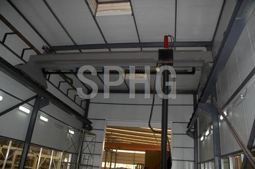 該設備利用基于PC的CNC技術、PLC可編程控制技術及伺服驅動系統,通過對專用車大型箱體噴涂工藝研究,我公司自主研發了專用車大型箱體CNC自動噴涂系統、封閉式凈化噴漆房及噴槍自動執行裝置,通過預先對專用車大型箱體外形及噴涂圖案、顏色進行實時編程并存儲到CNC自動噴涂系統中。工件進行噴涂時調出相應的程序,進行全封閉的自動噴涂。由于工人遠離了噴漆房,避免了油漆對工人的身體傷害,通過水簾對漆霧凈化保護了大氣環境。